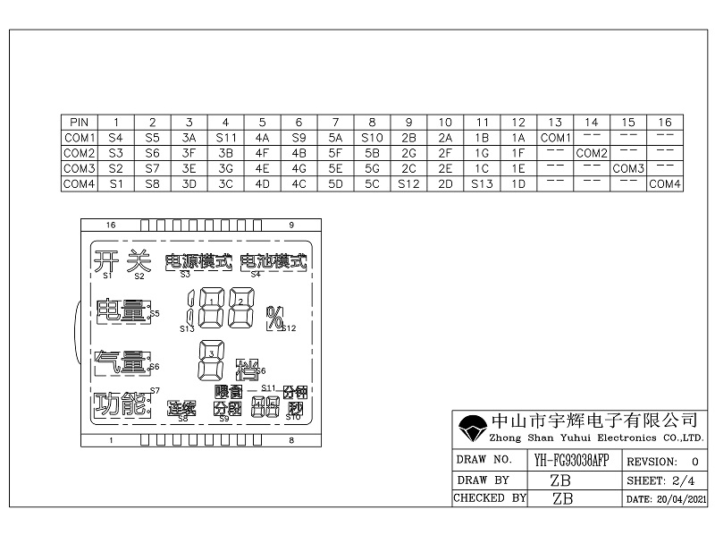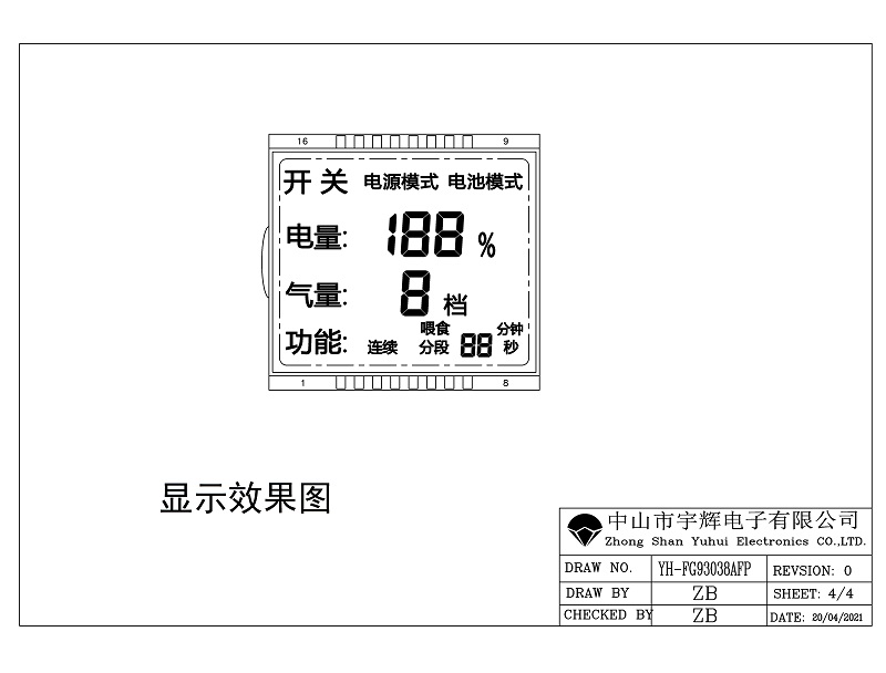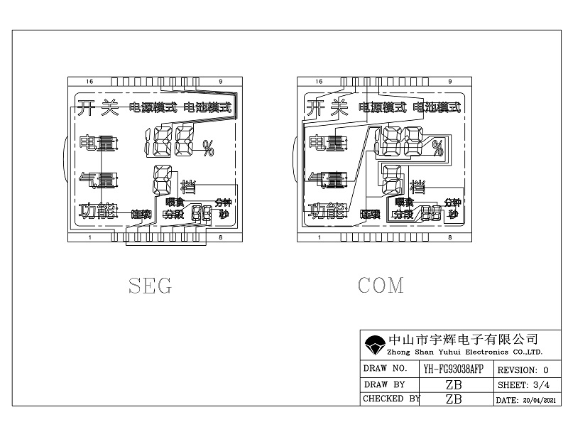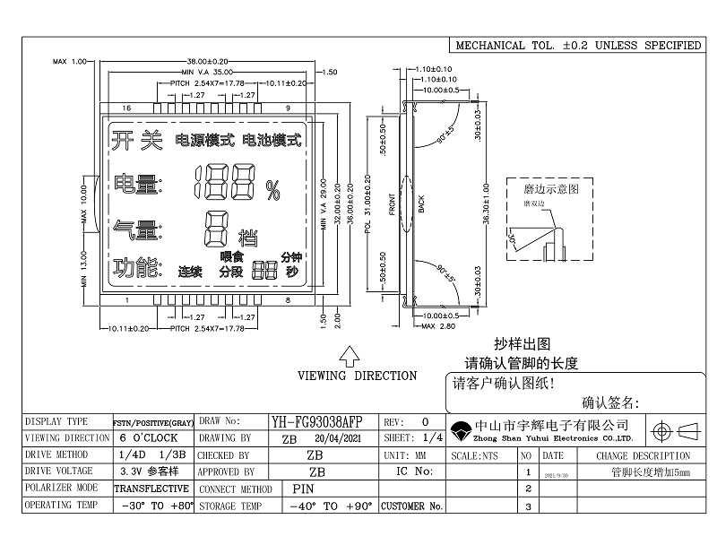 8, 驅動方式:1/4DUTY 1/3BAIS (按客戶所用IC和客戶要求確定)